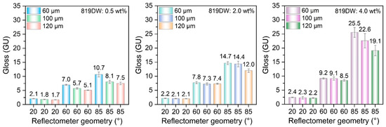 The gloss values of cured films with three measurement geometries.