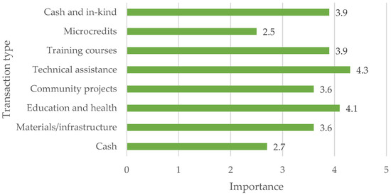 | 5 | In PES mechanisms, buyers can compensate the administrators of ES using different types of transaction: cash, in-kind (materials/infrastructure, education and health, community projects, technical assistance, micro-credits, training courses, etc.) and a combination of cash with in-kind. To what degree to you consider that the type of transaction is relevant for the success of the PES mechanism? |
