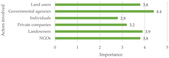 | 6 | Several categories of actors are involved in PES mechanisms: buyers, sellers, and intermediaries (act as mediators between buyers and sellers or have an administrative role) of ES. They can be private and public entities. Public buyers include governmental agencies (national or local) and land users. Private buyers include landowners, farmers, private companies, NGOs or individuals such as tourists who, through their fees, financed the maintenance of a given landscape or an ecosystem. Private sellers include landowners, meanwhile public sellers and intermediaries include governmental agencies. To what degree do you consider that the type of organizations is relevant to the success of the PES mechanism? |