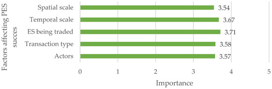 - Temporal scale. Most of the analyzed case studies were implemented at short- and mid-term temporal scales, with optimal timing in terms of funding for PES schemes being mid-term and long-term funding. Long-term implementation had a 100% success rate, while many of the stakeholders perceived long-term implementation as being very relevant for PES success.