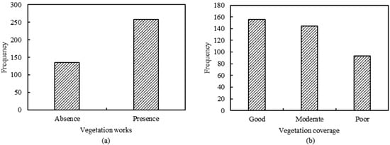 Distributions of vegetation condition features. (a) Vegetation works and (b) vegetation coverage.