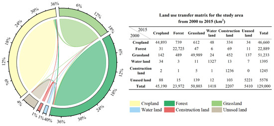 Land use transfer chord diagram for the study area from 2000 to 2015.