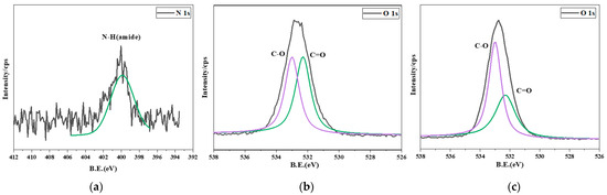 Origin software (b9.5.1.195, Northampton, MA, USA) was used to deconvolute the XPS peaks and calculate the area of each peak, and the percentage of carbon in different chemical states was obtained according to the area of each peak. The O/C ratio can be measured by the peak area.