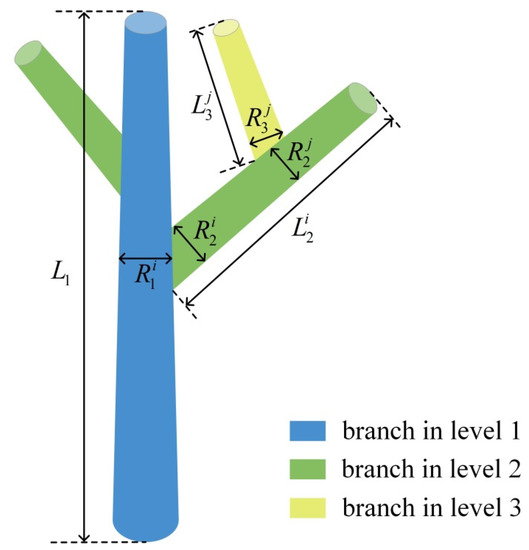 where and ; and represent the ratio of radius and the ratio of length of branches at different levels, respectively.