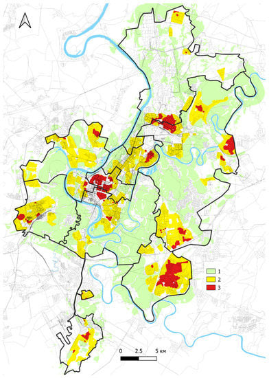 - Urban Development. Urban and Rural Planning and Development. Code of Practice 42.13330.2016; Ministry of Construction and Housing and Communal Services of the Russian Federation: Moscow, Russia, 2016. (In Russian) [Google Scholar]