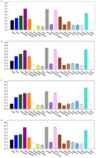 Gene significance for physiological biochemical indicators modules: (a) ABA content, (b) IAA content, (c) soluble sugar content, and (d) soluble protein content.