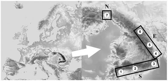 - Bohn, U.; Gollub, G.; Hettwer, C.; Weber, H.; Neuhäuslová, Z.; Raus, T.; Schlüter, H. Karte der Natürlichen Vegetation Europas/Map of the Natural Vegetation of Europe, Maßstab/Scale 1: 2,500,000; Landwirtschaftsverlag: Münster, Germany, 2000. [Google Scholar]