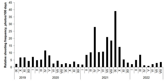 Dynamics of relative shooting frequencies of raccoon dogs in 2019–2022.