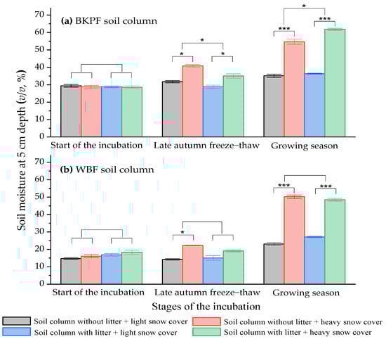 3.1. Changes in Soil Moisture at the Different Stages of the Incubation