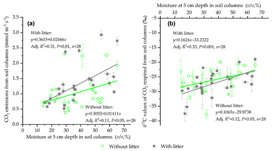 - Phillips, C.L.; Nickerson, N.; Risk, D.; Kayler, Z.E.; Anderson, C.; Mix, A.; Bond, B.J. Soil moisture effects on the carbon isotope composition of soil respiration. Rapid Commun. Mass Spectrom. 2010, 24, 1271–1280. [Google Scholar] [CrossRef]