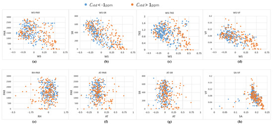 According to the formula, the smaller is, the lower the CO2 concentration in the unit space is. < 0 indicates that the CO2 concentration in the unit space is lower than the average concentration in the block, and vice versa.