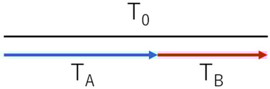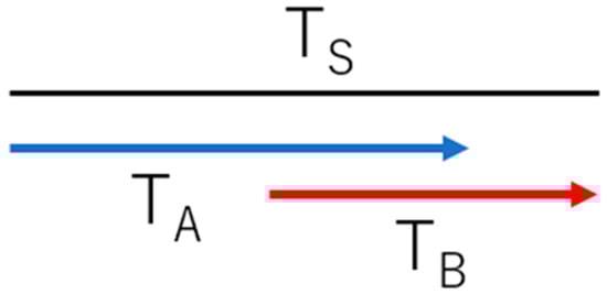 where Ts (<T0) is the total production time for the parallel model and s (<1) is the time-saving rate. Here, s is equal to 1 for the serial production model in Equation (4). In Figure 3, TA and TB are expressed by the following equations: