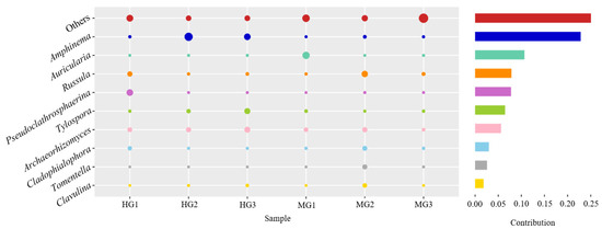 Contribution map of ECM fungal community composition in the HG and MG families of P. massoniana. Note: HG, high growth and MG, medium growth.