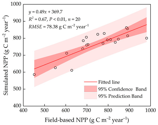 Comparison between simulated NPP and field-based NPP in 20 sampling sites.