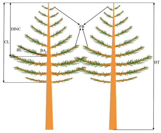 - Jiang, L.; Zhang, R.; Li, F. Modeling branch length and branch angle with linear mixed effects for dahurian larch. Sci. Silvae Sin. 2012, 48, 53–60. [Google Scholar] [CrossRef]