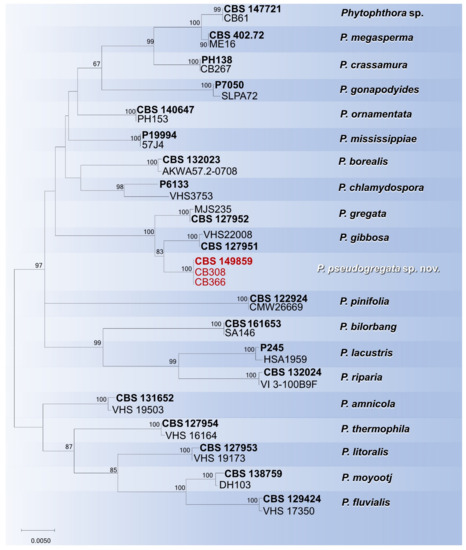 In addition, three isolates obtained from necrotic tissues of Alnus viridis, Juniperus communis and Rhododendron ferrugineum could not be assigned to any known Phytophthora species and are therefore described here as Phytophthora pseudogregata sp. nov.