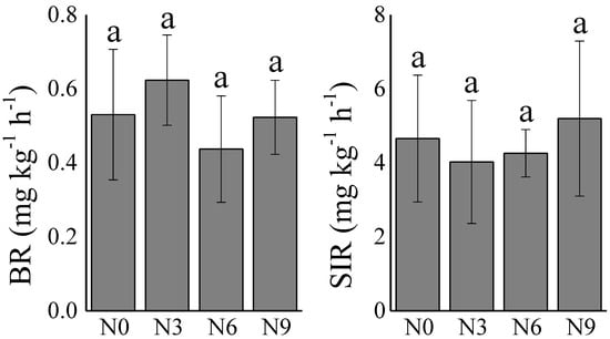 | N0 | 3.15 ± 0.12 a b | 0.93 ± 0.01 a | 2.78 ± 0.05 a | 0.82 ± 0.01 ab |
