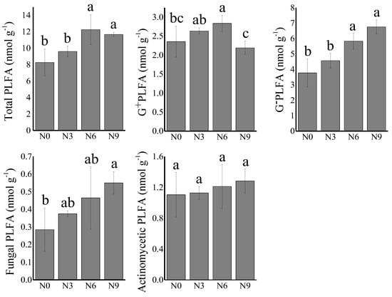 3.1.2. Soil Microbial PLFAs under N Addition