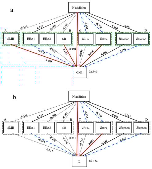 3.3. Integrated Effect of Microbiological Properties on SOC Fractions and Stability in Response to N Addition Treatments