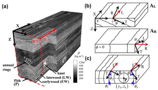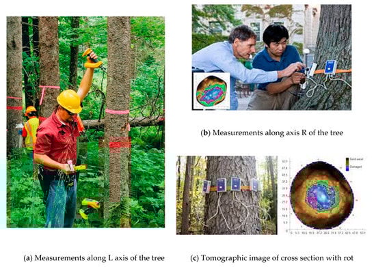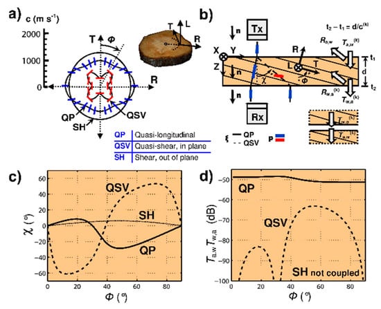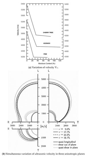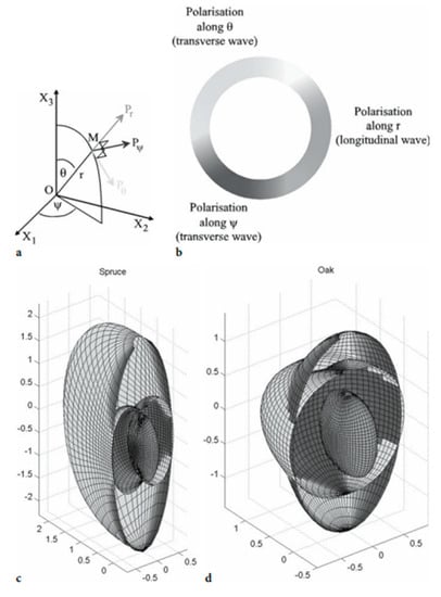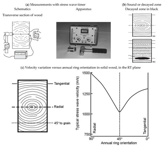 Acoustics is a field with significant application in wood science and technology for the classification and grading of a large variety of products, from standing trees to building structural elements and musical instruments, using non-destructive tests [,,]. The acoustics of wood employs mechanical waves which are sensitive to key parameters of this material, such as the density, the grain angle, the annual ring curvature, the elastic moduli, the moisture content, the degradation by pathogenic factors, etc. The experimental data collected with different acoustic methods are difficult to interpret correctly because of numerous factors acting on the phenomena related to the propagation of acoustic waves in solid wood or wood-based composites. Therefore, there is a need to have a good understanding of phenomena related to the wave propagation in media of various complexity, such as the orthotropic media which are described in the section: Theoretical Aspects Related to Acoustical Characterization of Wood. The following sections discuss acoustic and ultrasonic methods for quality assessment of trees, logs, lumber and structural timber products. Special attention is given to methods for the characterization of acoustical properties of wood species used for musical instrument manufacturing. High power ultrasound is a field with important potential for industrial applications to wood drying, among others.