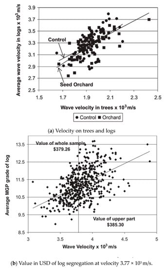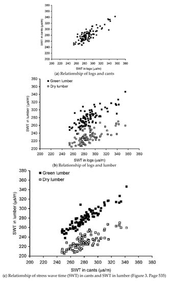 - Dickson, R.L.; Matheson, A.C.; Joe, B.; Ilic, J.; Owen, J.V. Acoustic segregation of Pinus radiata logs for sawmilling. N. Z. J. Forest. Sci. 2004, 34, 175–189. [Google Scholar]