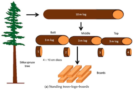 - Simic, K.; Gendvilas, V.; O’Reilly, C.; Harte, A.M. Predicting structural timber grade-determining properties using acoustic and density measurements on young Sitka spruce trees and logs. Holzforschung 2019, 73, 139–149. [Google Scholar] [CrossRef]