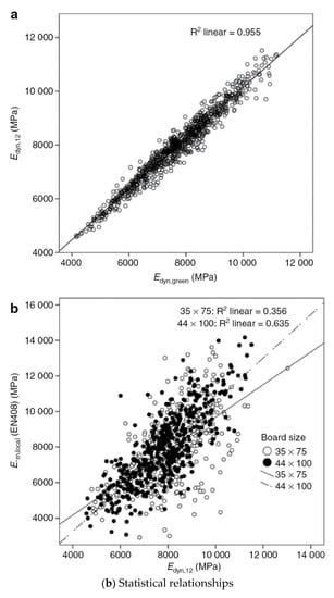 - Arriaga, F.; Monton, J.; Segues, E.; Íñiguez-Gonzalez, G. Determination of the mechanical properties of radiata pine timber by means of longitudinal and transverse vibration methods. Holzforschung 2014, 68, 299–305. [Google Scholar] [CrossRef]