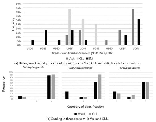 - Nocetti, M.; Brunetti, M.; Bacher, M. Efficiency of the machine grading of chestnut structural timber: Prediction of strength classes by dry and wet measurements. Mater Struct. 2016, 49, 4439–4450. [Google Scholar]
