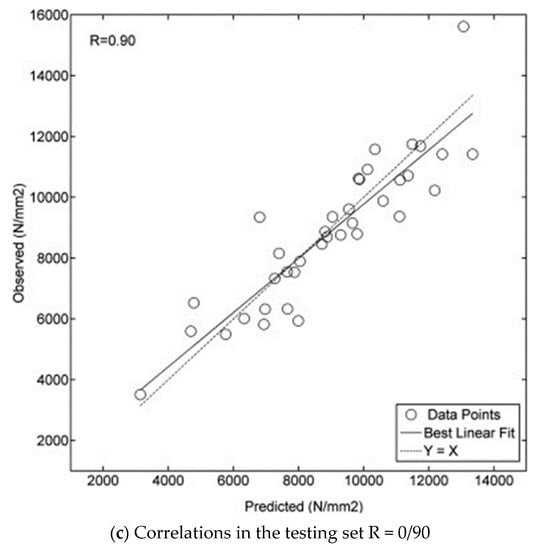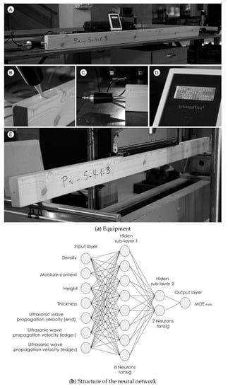 - García-Iruela, A.; Fernández, F.G.; Esteban, L.G.; De Palacios, P.; Simón, C.; Arriaga, F. Comparison of modelling using regression techniques and an artificial neural network for obtaining the static modulus of elasticity of Pinus radiata D. Don. timber by ultrasound. Compos. Part B-Eng. 2016, 96, 112–118. [Google Scholar]