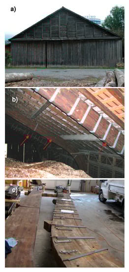 - Dietsch, P.; Tannert, T. Assessing the integrity of glued-laminated timber elements. Constr. Build. Mater. 2015, 101, 1259–1270. [Google Scholar] [CrossRef]