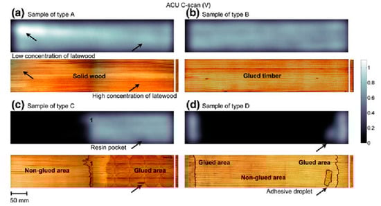 - Sanabria, S.J.; Furrer, R.; Neuenschwander, J.; Niemz, P.; Sennhauser, U. Air-coupled ultrasound wave propagation in glued laminated timber structures applied to bonding quality assessment. In Proceedings of the 2010 IEEE International Ultrasonics Symposium, San Diego, CA, USA, 11–14 October 2010. [Google Scholar]