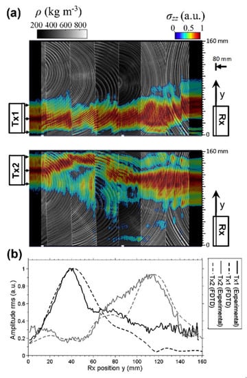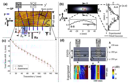 - Sanabria, S.; Furrer, R.; Neuenschwander, J.; Niemz, P.; Schütz, P. Analytical modelling, finite-difference simulation and experimental validation of air-coupled ultrasound beam refraction and damping through timber laminates, with application to non-destructive testing. Ultrasonics 2015, 63, 65–85. [Google Scholar] [CrossRef]