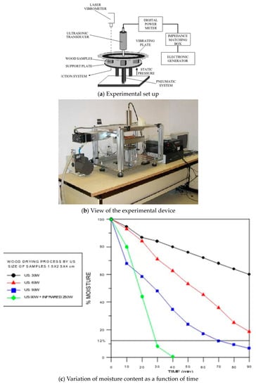 - Khmelev, V.N.; Khmelev, S.S.; Tsyganok, S.N.; Titov, G.A. Ultrasonic drying of birch veneer. In Proceedings of the 2011 International Conference and Seminar on Micro/Nanotechnologies and Electron Devices Proceedings, Erlagol, Russia, 30 June 2011–4 July 2011; pp. 295–299. [Google Scholar]
