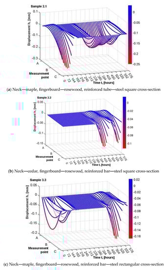 - Stanciu, M.D.; Bucur, V.; Munteanu, V.M.; Georgescu, S.V.; Năstac, S.M. Moisture-induced deformation in the neck of a classical guitar. Holzforschung 2019, 73, 371–379. [Google Scholar] [CrossRef]