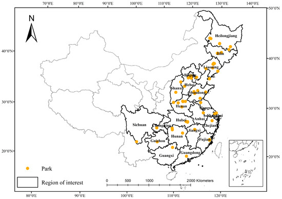Cities’ socioeconomic dimensions were obtained from statistical yearbooks from the 2020 edition. Cities were categorized into different urbanization levels according to their inhabitant populations [34]. That is, cities with a population under five hundred thousand were categorized as “small-sized”. The “medium-size” cities were those with population that ranged between five hundred thousand and 1 million; cities with population ranging from 1 to 5 million were defined as “large-sized”. Finally, the “metro-size” cities referred to cities with populations in a range from 5 to 10 million; cities with population of more than 10 million were termed “mega-sized”. Socioeconomic indicators of host cities where urban forests were located are shown in Table S1.