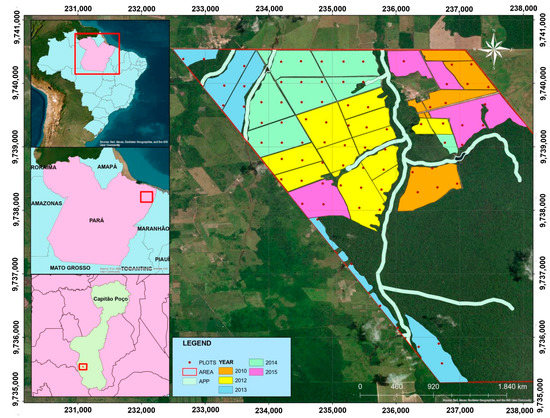 - Campos, J.C.C.; Leite, H.G. Mensuração Florestal: Perguntas e Respostas; 5. Aufl.; UFV: Viçosa, Brazil, 2017; ISBN 9788572695794. [Google Scholar]