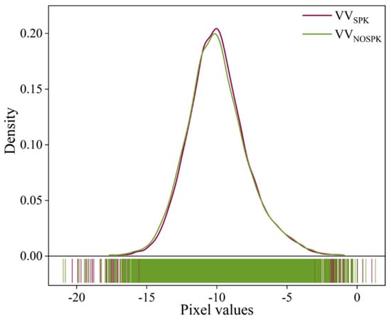 The distribution of SAR data based on VV polarization: speckle filtered vs. unfiltered.