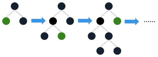 The Light Gradient Boosting Machine, XGBoost, and Catboost are lifting algorithms [28]. For the LightGBM, during the training process, the decision tree algorithm of Histogram was adopted, which greatly reduced the calculation amount of the model. Meanwhile, the leaf-wise growth strategy (shown in Figure 7) was introduced into the growth process of the subtree, which reduced the splitting of invalid nodes.