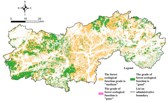 Distribution of forest ecological function levels in Lin’an.