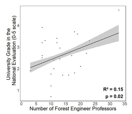 Therefore, the creation of new forest engineering programs should be widely discussed. A higher education degree usually means better opportunities in the labor market and a significant wage increase [51]; however, an excess of professionals can lead to the deterioration of jobs, as observed by numerous studies in various countries [26,52,53,54]. In addition, the lack of a professional perspective can lead to negative personal issues, such as job satisfaction, and even salaries that are not consistent with the educational level [55,56,57]. Finally, specific skills protect graduates from unemployment when the market is weak, but the degree alone does not [58].