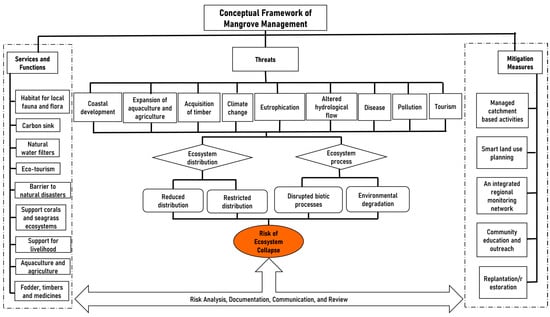 - Bindiya, E.S.; Sreekanth, P.M.; Bhat, S.G. Conservation and Management of Mangrove Ecosystem in Diverse Perspectives. In Conservation and Sustainable Utilization of Bioresources; Springer Nature: Singapore, 2023; pp. 323–352. [Google Scholar]