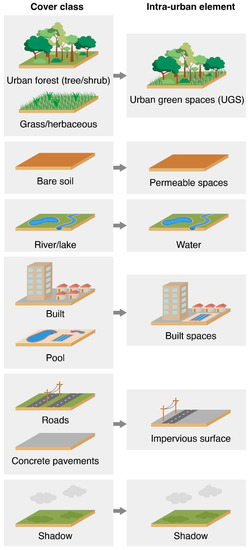 Land-cover classes and intra-urban element compositions for the supervised classifications.