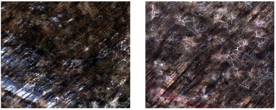 Satellite remote-sensing estimation methods must ensure comparability with remote-sensing data when conducting DFMC field measurements. Remote-sensing data suitable for monitoring DFMC are usually collected at a spatial scale of 0.1 to 100 ha, while DFMC is usually sampled at a smaller scale of 0.01 to 0.1 ha, and the location and date of DFMC sampling needs to be ensured to be the same as the satellite remote-sensing data, making it difficult to achieve real-time dynamic and accurate monitoring []. In addition, satellite remote sensing is susceptible to weather conditions (e.g., cloud cover) and vegetation canopy cover. These issues greatly limit the ability of satellite remote sensing to monitor DFMC. In contrast, unmanned aerial vehicle (UAV) platforms carrying multispectral cameras have a very high spatial resolution, which can reach the centimeter level, and are simple, efficient, flexible, and real time, fully guaranteeing the comparability of in situ measured DFMC with remotely sensed data. Correspondence between UAV remote-sensing data and surface DFMC was established to assess the potential of estimating DFMC directly from UAV remote-sensing imagery. However, the images collected by UAV multispectral cameras contain both surface and tree spectral information, and there is currently no set of processing procedures and methods for UAV multispectral image data that are suitable for the prediction of forest surface moisture content under vegetation cover conditions.