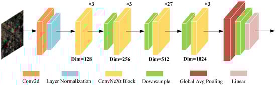 Based on the structure of Swin Transformer [], Zhuang Liu et al. [] changed the structure of ResNet [] and proposed a pure convolutional neural network of ConvNeXt. After experimental demonstration in the literature, the pure convolutional network (ConvNeXt) outperformed Swin Transformer in a classification task, target detection task, and image segmentation task with the same amount of computation.