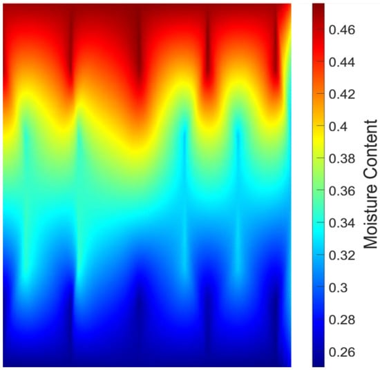 The equilibrium moisture content method indirectly solves the moisture content by modeling the relationship between the moisture content, equilibrium moisture content, and time lag, combining meteorological factors with the equilibrium moisture content and time lag. Catchpole developed a method for estimating the equilibrium moisture content and fuel moisture-response time []. Nelson used the equilibrium moisture content to find that in a combustible layer with needles placed vertically, the moisture loss is determined by the particles []. For beds of flat needles, plots of the area drying rate versus the fuel load illustrate a transition from control by individual particles to control by the bed structure when the fuel loading is approximately 0.33 kg·m−2. Yu used the Nelson [] and Simard methods (which consider the equilibrium moisture content and the associated time lag) and direct regression method (which allows for the direct attainment of the fuel moisture content (FMC)). Both the Nelson and Simard methods predicted the hourly twig moisture content more accurately than the direct regression method []. Zhao assessed how the soil moisture content affects the DFMC by coupling the soil moisture as a boundary condition with the physically based ”Koba” model [,]. The equilibrium moisture content method is used to model the moisture content of fuels where the equilibrium moisture content of the fuel is known, and this method is feasible in the laboratory for variations in a single condition (temperature, relative humidity, wind speed, and rainfall). In the field, however, the equilibrium moisture content is difficult to estimate and the number of uncertainties affecting the fuel moisture content in the field make the use of the equilibrium moisture content method somewhat difficult. The equilibrium moisture content method is relatively suitable on small scales due to its reliability in physical methods [], but on larger scales, the accuracy decreases and the workload increases significantly. Not all observations of the fuel moisture content are always available, especially for larger fuels [].