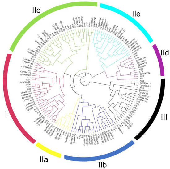 We also identified tandem duplication events, which are a common mechanism for gene family expansion. Notably, Chr05 revealed four clusters of CpWRKY genes, indicating that it was a hotspot for WRKY gene distribution. In total, the 47 CpWRKY genes were clustered into 23 locations across various linkage groups, further highlighting the occurrence of tandem duplication events.