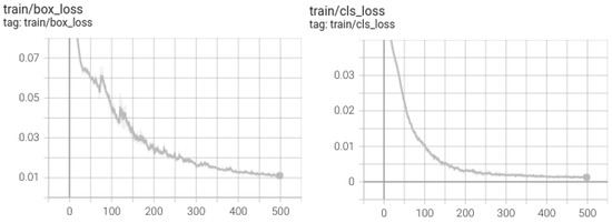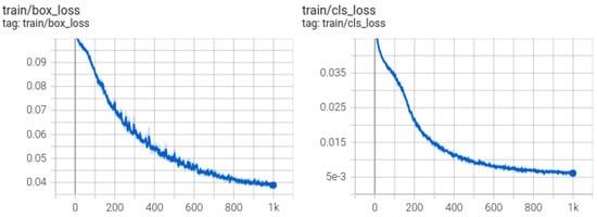 The box loss represents how well the algorithm can locate the center of an object and how well the predicted bounding box covers an object. Objectness is essentially a measure of the probability that an object exists in a proposed region of interest. If the objectivity is high, this means that the image window is likely to contain an object. Classification loss indicates how well the algorithm can predict the correct class of an object [49]. The box loss, objectness loss, and classification loss are indicators of how well an algorithm predicts an object [58].