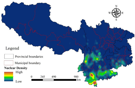 Nuclear density of forest fire occurrence in Southwestern China.