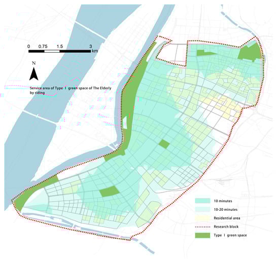 Service area of Type I green space by riding.