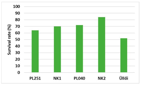 Survival rate (%) of the clones (2022 April, Napkor, Hungary).